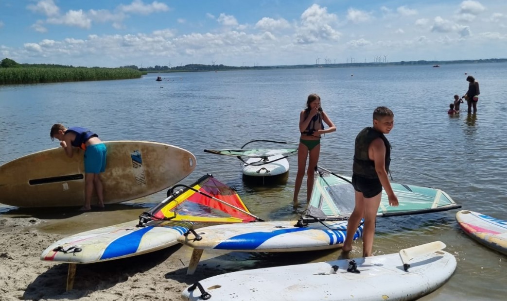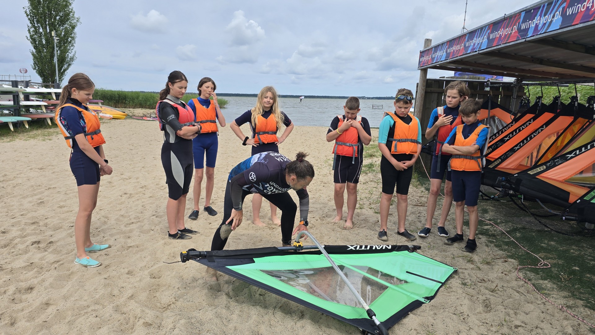 Zajęcia grupowe z windsurfingu, żeglarstwa i SUP prowadzone są przez instruktorów sportów wodnych i odbywają się na jeziorze Bukowo. Zapewniamy niezbędny sprzęt, kamizelki asekuracyjne.